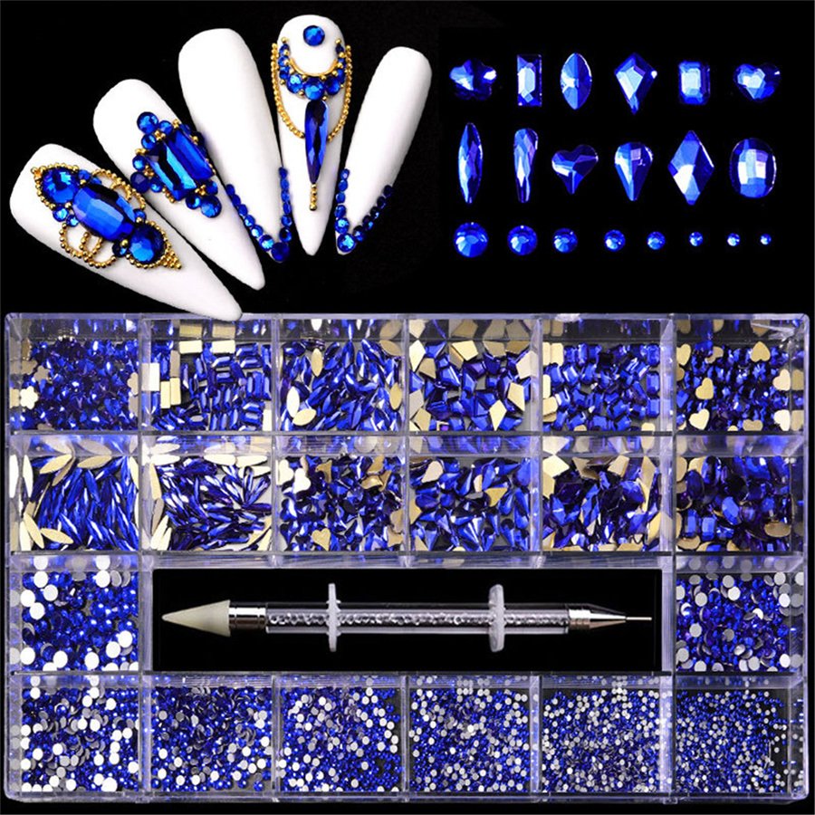 Home > 21 Grids a Box; Hot Sale 21 Grid Boxed Nail Diamond Flat Glass Shaped Diamond DIY Nail Rhinestone Nail Art Jewelry Set - 09