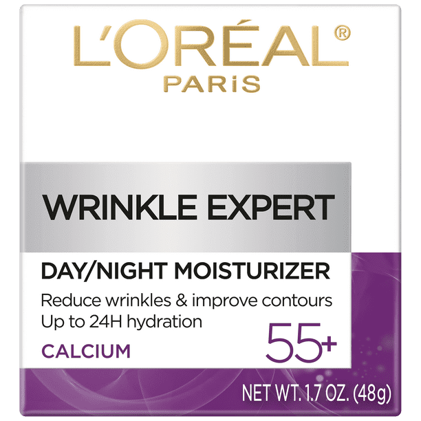 L'Oreal Paris Wrinkle Expert Face Moisturizer; L'Oreal Paris 55 Moisturizer Anti-Aging Face Moisturizer Wrinkle Expert is L'Oreal Paris' first daily anti-wrinkle skincare line for all of life's stages featuring formulas; with selected ingredients; for younger looking skin at every age. Our anti-wrinkle face cream for ages 55 with Calcium works to strengthen thinning skin and improve smoothness for a more youthful appearance. Visibly reduces signs of aging including wrinkles; sagging contours; and density loss.