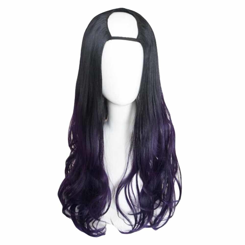 Purple Black 65 cm U Shape 2 Tone Long Curly Hair Wig Synthetic Full Wig Cosplay Halloween Dress Up