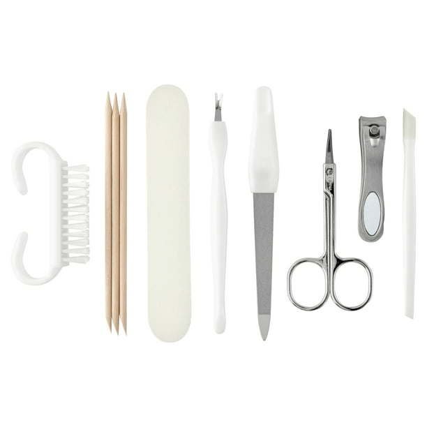 It's the perfect accessory for a relaxing day of self-care or just regular nail maintenance. Equate beauty deluxe manicure kit includes 8 nail manicure tools, everything you need for a nail manicure. Use the nail brush to remove dirt and clean outer fingernail surfaces and difficult areas underneath nails. The fingernail clipper has precision ground cutting edges to provide clean, even cuts every time. The sapphire file features a comfortable grip and two textures for shaping and finishing your fingernails.